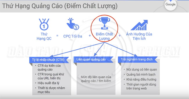 Đây là cách Google xác định xem quảng cáo của bạn có xứng đáng với truy vấn tìm kiếm hay không. Và chi phí của một lần nhấp chuột cũng như định vị của nó.