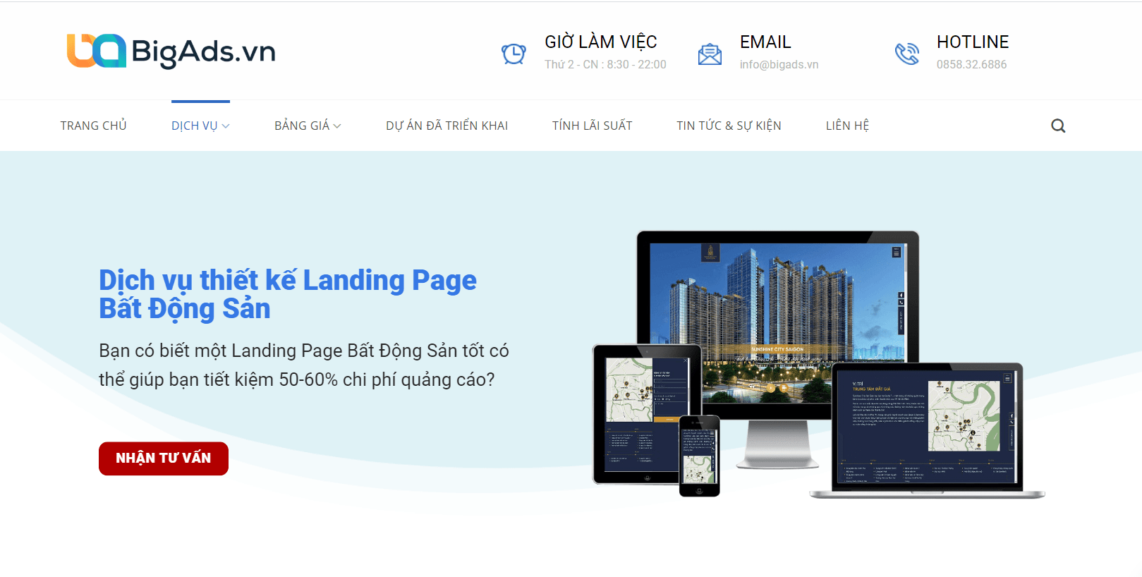 Dịch vụ thiết kế Landing Page Bất Động Sản tại Bigads