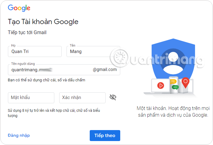 Nếu bạn không có tài khoản Google, bạn hãy đăng ký lại. Bước này chỉ tốn của bạn mấy phút thôi nên dừng băn khoăn hãy tạo tài khoản Google nhé.