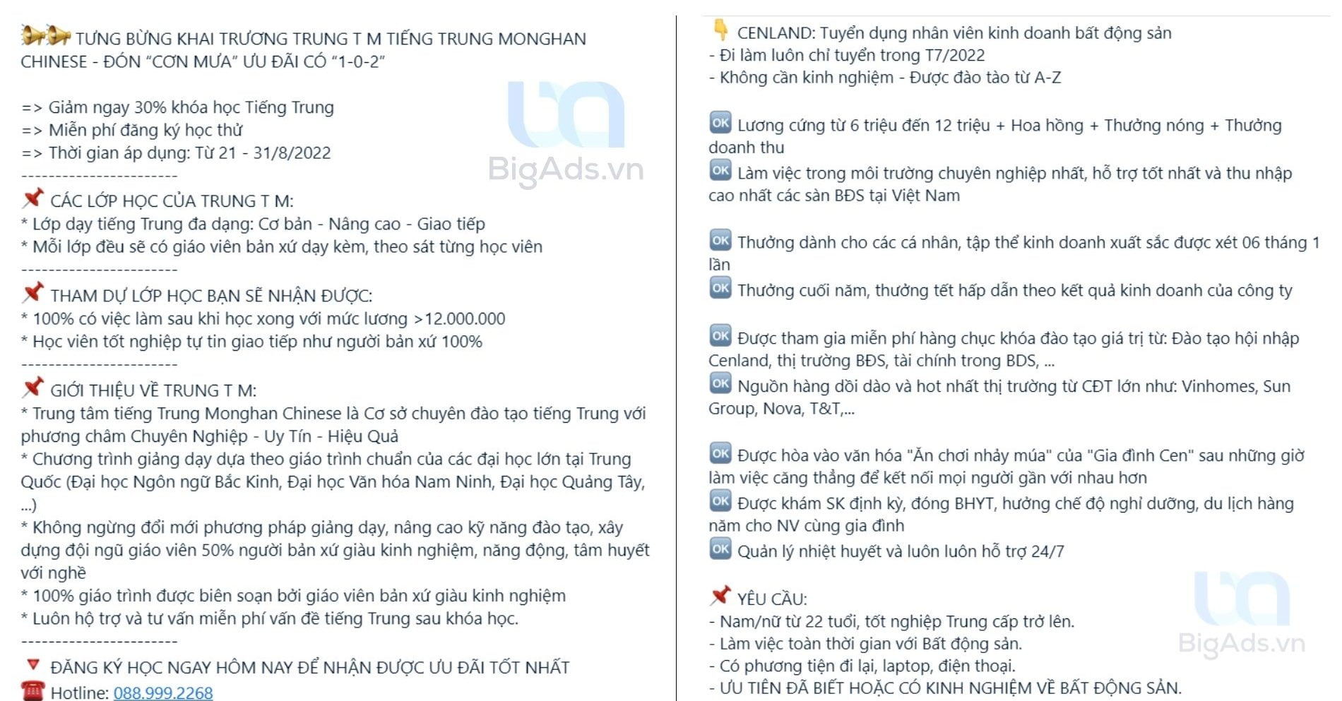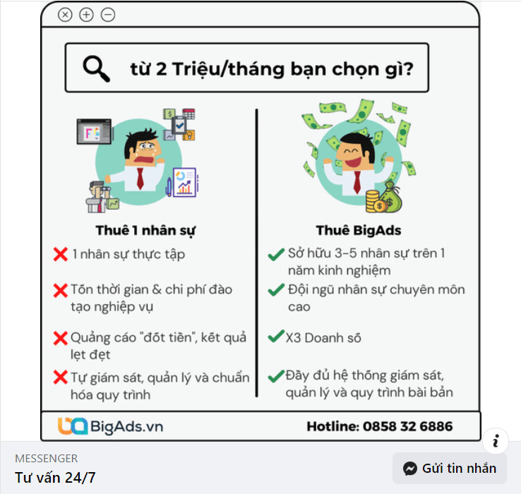Hoặc một số mẫu content quảng cáo facebook ngành dịch vụ của BigAds: