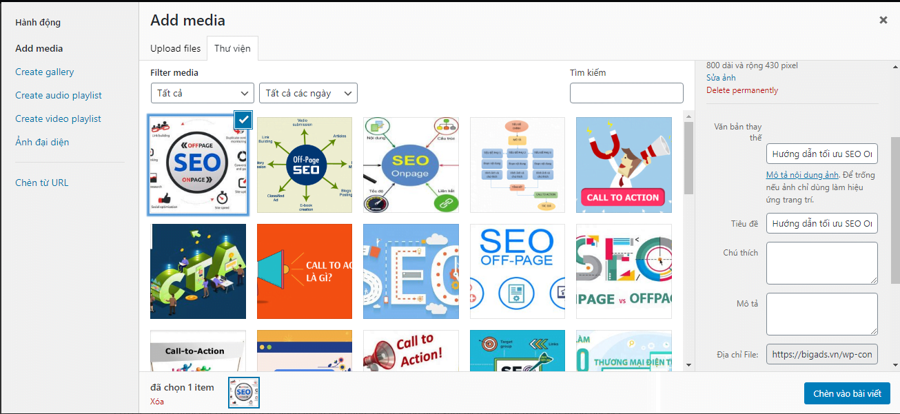 - Tối ưu SEO các tags cho tất cả hình ảnh trong bài