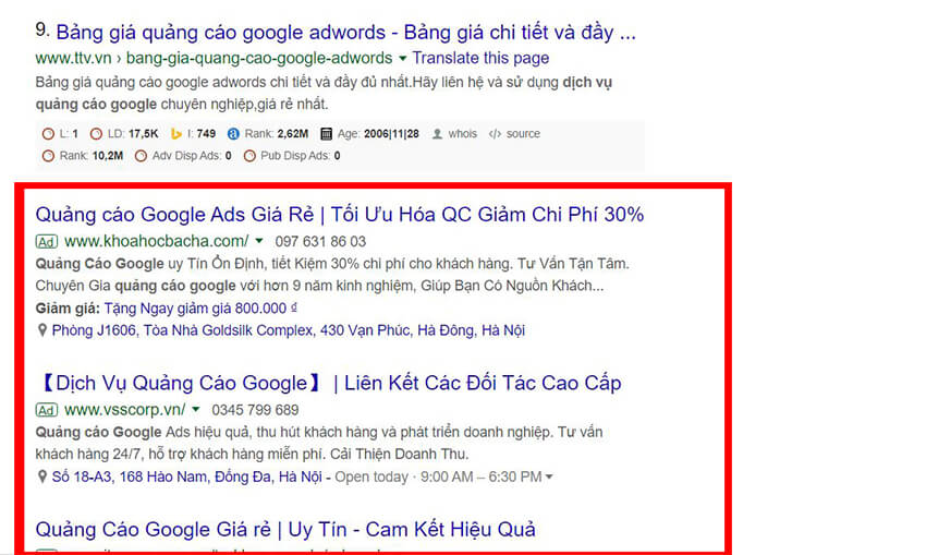Đặt vị trí quảng cáo ở đầu trang luôn là mục tiêu của chiến dịch quảng cáo google ads hướng tới. Tuy nhiên giá thầu ở top 4 vị trí đầu trang lại rất cao, tỷ lệ cạnh tranh cao. Với ngân sách hạn chế, bạn nên lựa chọn hình thức quảng cáo ở top 4 cuối trang đầu. Vì giá thầu top cuối trang sẽ thấp hơn khá nhiều so với top đầu trang. Hơn nữa khi người dùng lướt đến cuối trang có thể thấy là họ đang chưa tìm được thông tin mà các website bên trên chưa có. Nếu bạn đáp ứng được nhu cầu đó tỷ lệ chuyển đổi sẽ rất tốt.