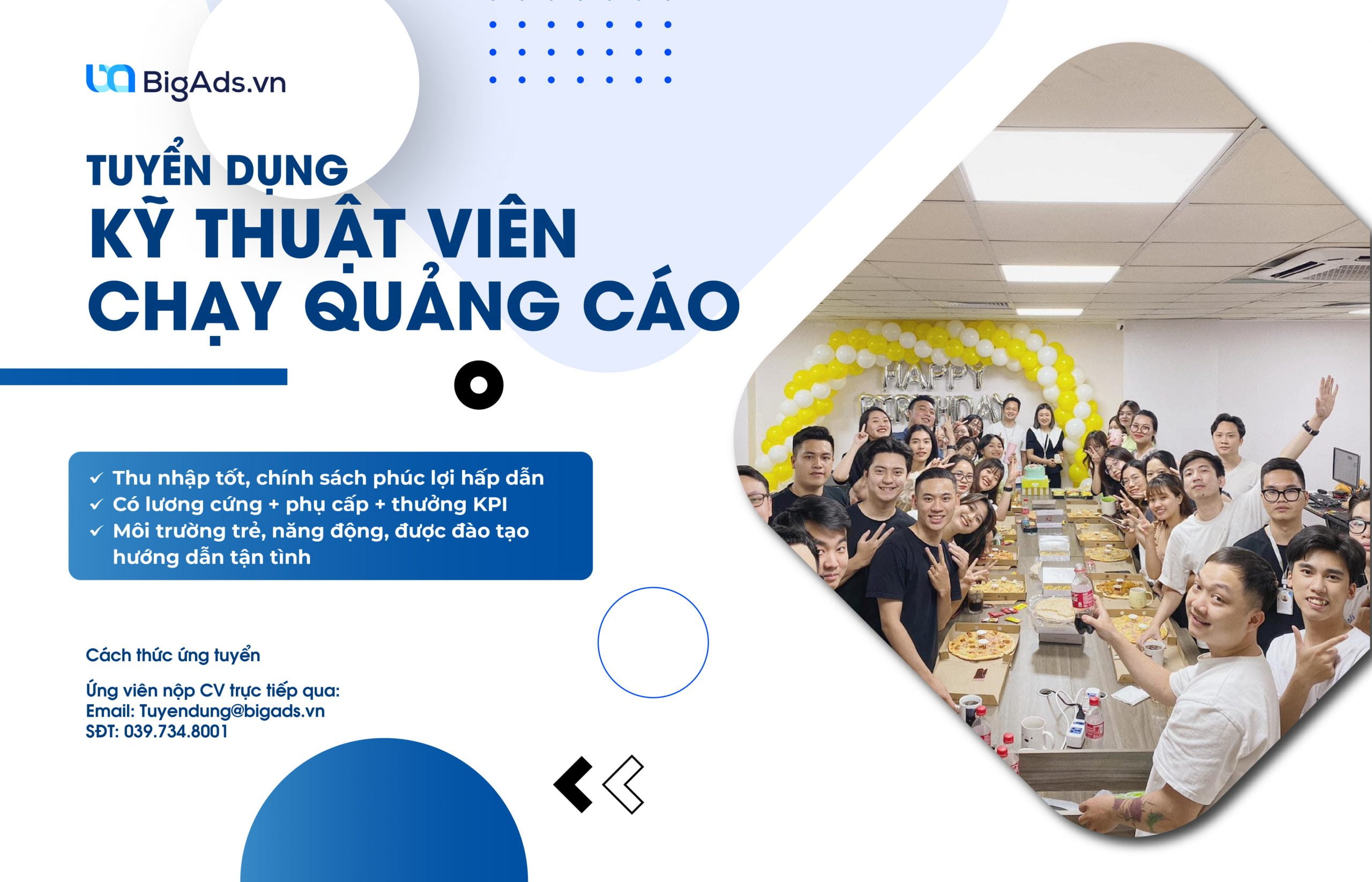 Thời gian làm việc: 8h30 – 17h30 ( Từ T2 – T7 ) CÔNG TY TNHH CÔNG NGHỆ VÀ TRUYỀN THÔNG BIGADS Địa chỉ: số 16 ngõ 204 Trần Duy ...